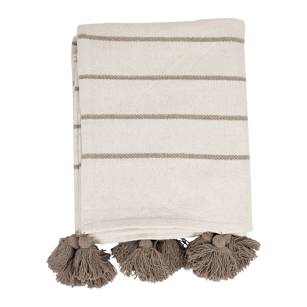 05 56 69 68 67-contact@fabriquedestyles.frPlaid en coton rayé écru et taupe 170x130cm - Nomadea