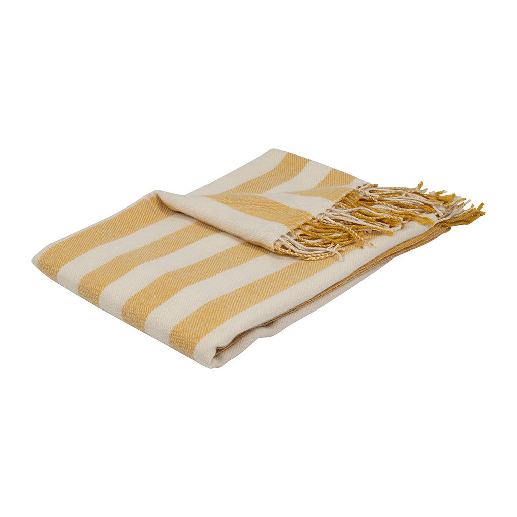 Découvrez l'accessoire idéal pour réchauffer vos soirées d'hiver : notre plaid en acrylique écru et jaune.