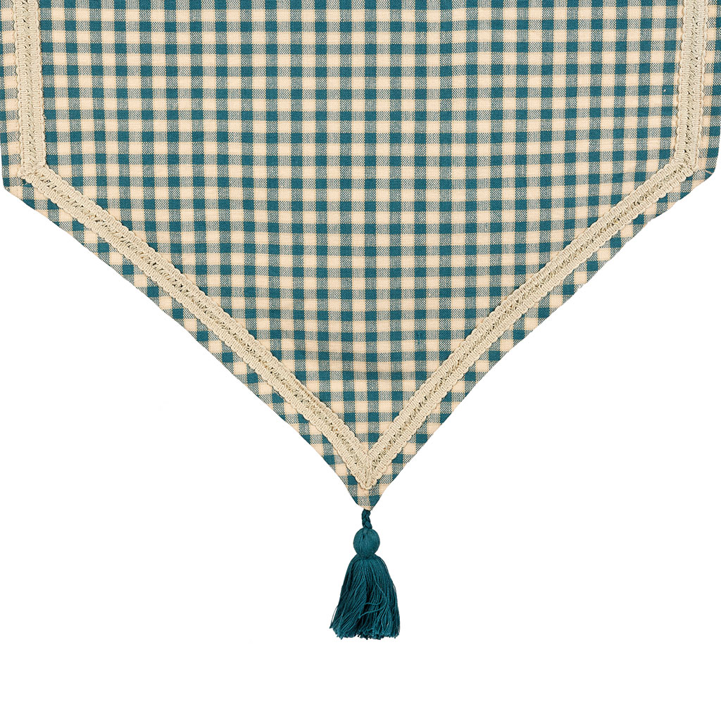 05 56 69 68 67-contact@fabriquedestyles.frChemin de table à carreaux en coton bleu antique 150x45cm