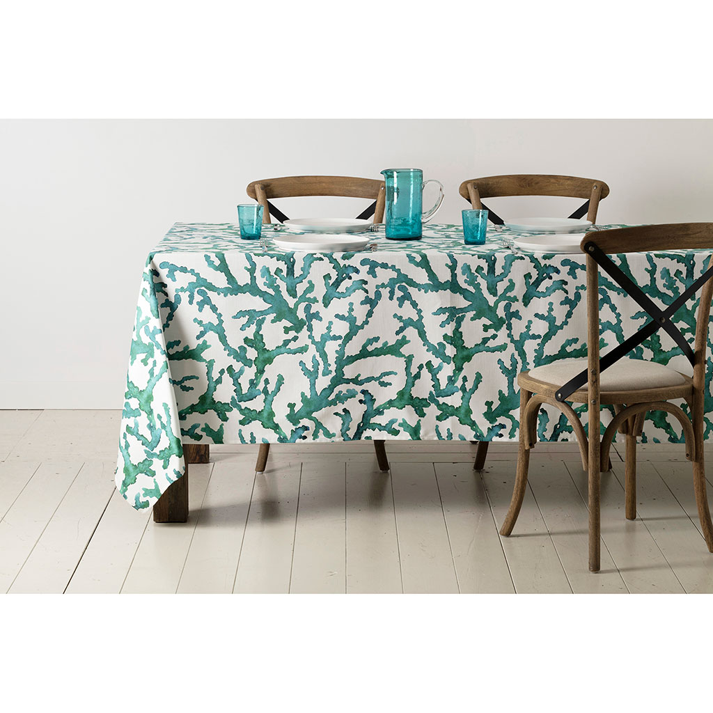 Venez découvrir notre Nappe estran blanc+emeraude 160x160cm-200g/m2 coton de la marque Côté Table à découvrir sur Fabrique de Styles.