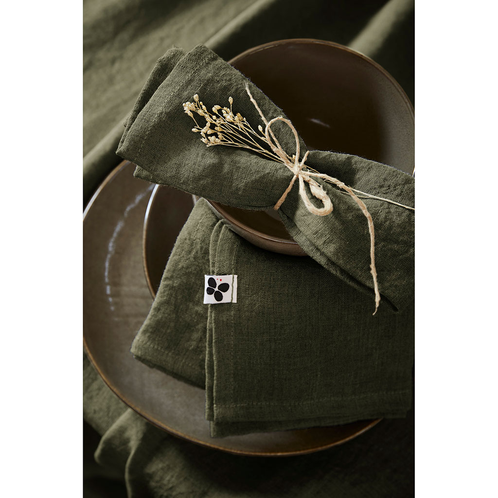 Ajoutez une touche d'élégance à votre table avec notre Lot de 3 serviettes en lin lavé thym 40x40cm - Soline.