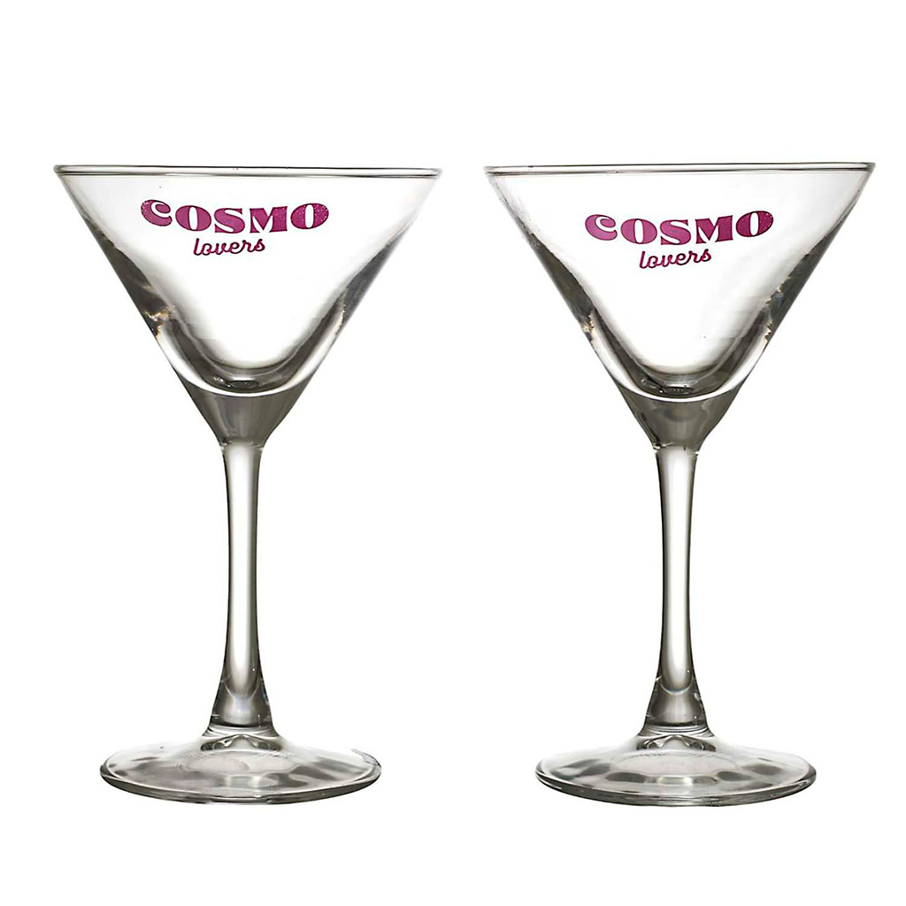 Le coffret contient 2 verres à Cosmopolitain "Cosmo lovers" au format parfait, 2 pailles en métal cuivré, 2 touillettes rouges, 2 dessous de verre assortis et 2 mini parasols pour une présentation pétillante et décontractée.