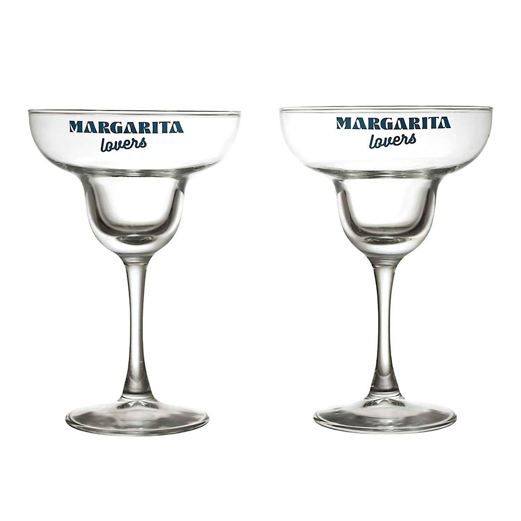 Ce kit complet comprend 2 verres à margarita au style rétro gravés "Margarita lovers", parfaits pour déguster vos cocktails givrés.