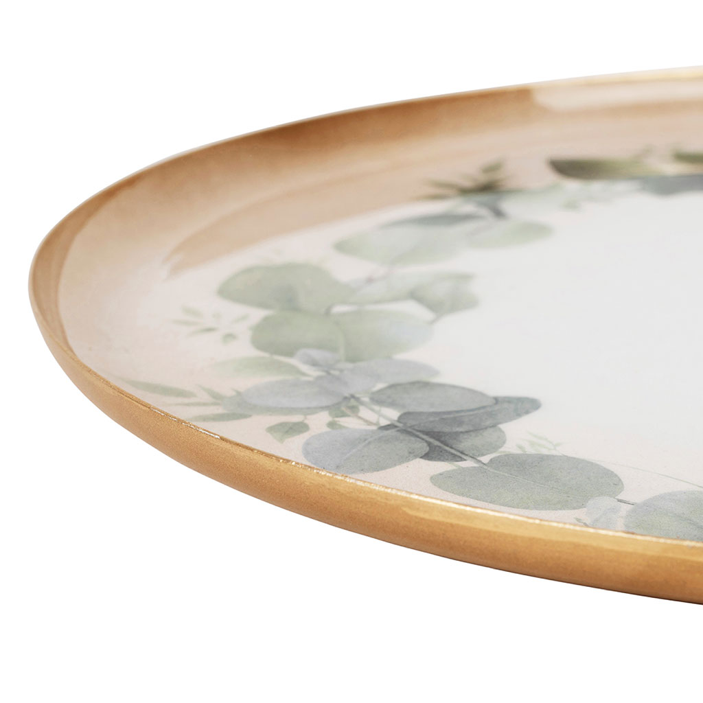 Apportez une touche naturelle et élégante à vos espaces avec ce plateau rond en fer Eucalyptus.