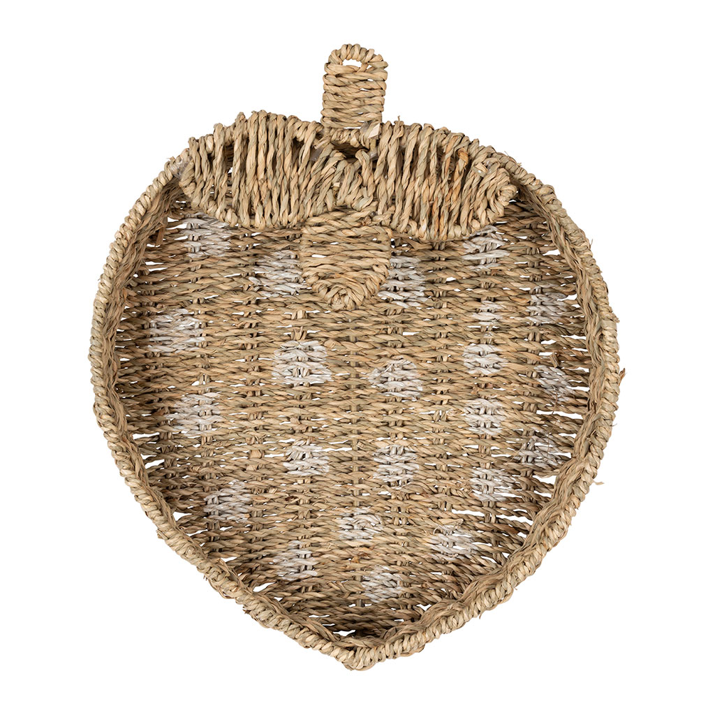 Ajoutez une note de fraîcheur et d'originalité à votre décoration avec ce plateau en forme de fraise, confectionné en jonc de mer naturel et blanc.