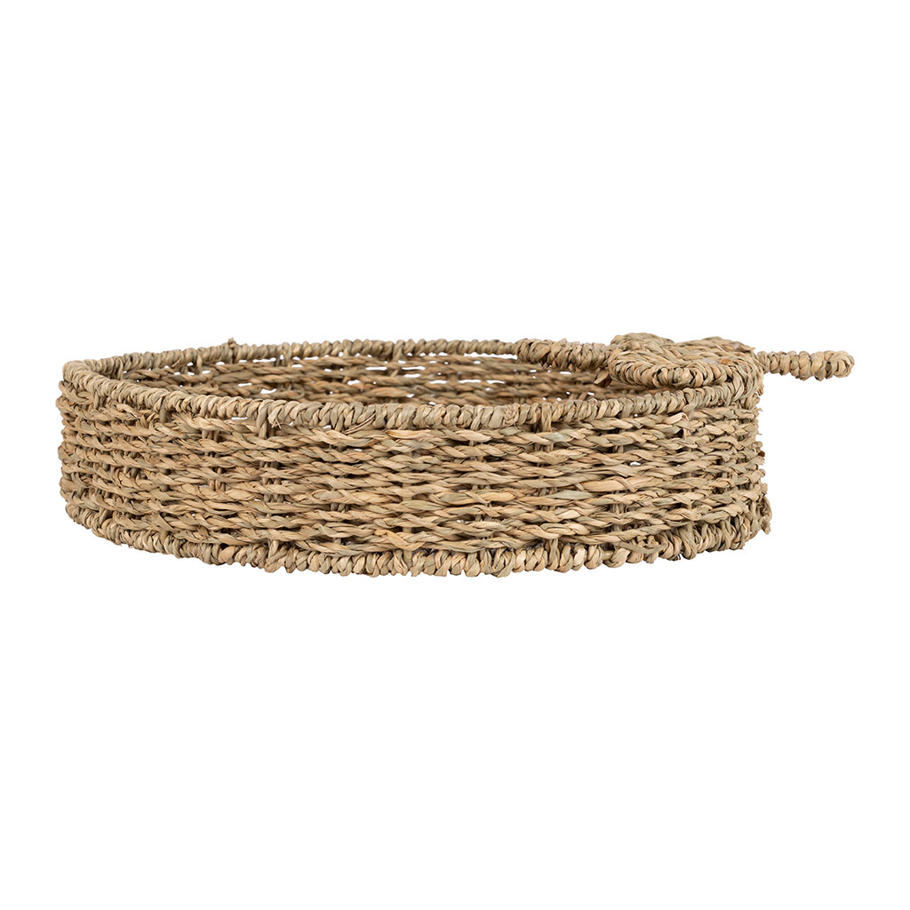 Invitez l'esprit des beaux jours chez vous avec ce charmant plateau en jonc de mer naturel et blanc, une pièce unique qui égayera à coup sûr votre espace de vie.