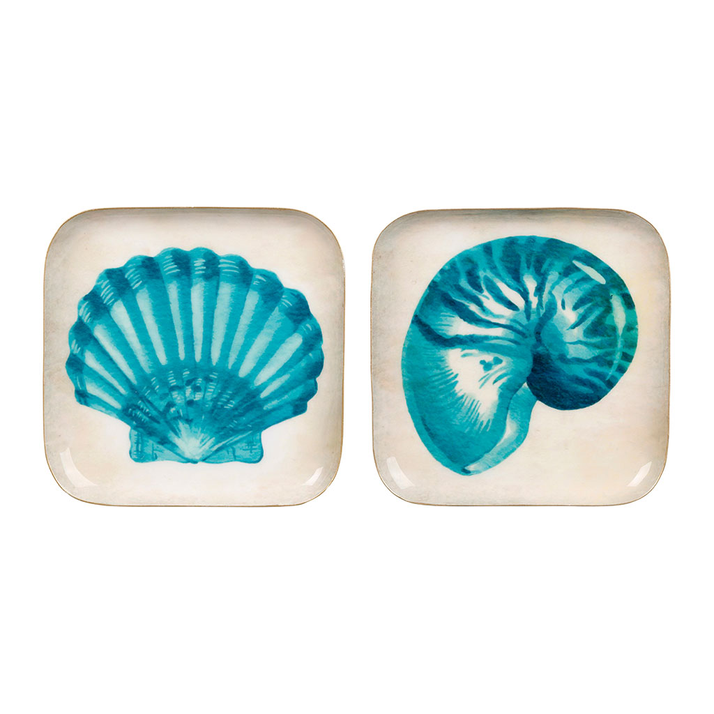 05 56 69 68 67-contact@fabriquedestyles.frPlateaux carrés coquillage x2 en fer turquoise 16x16cm