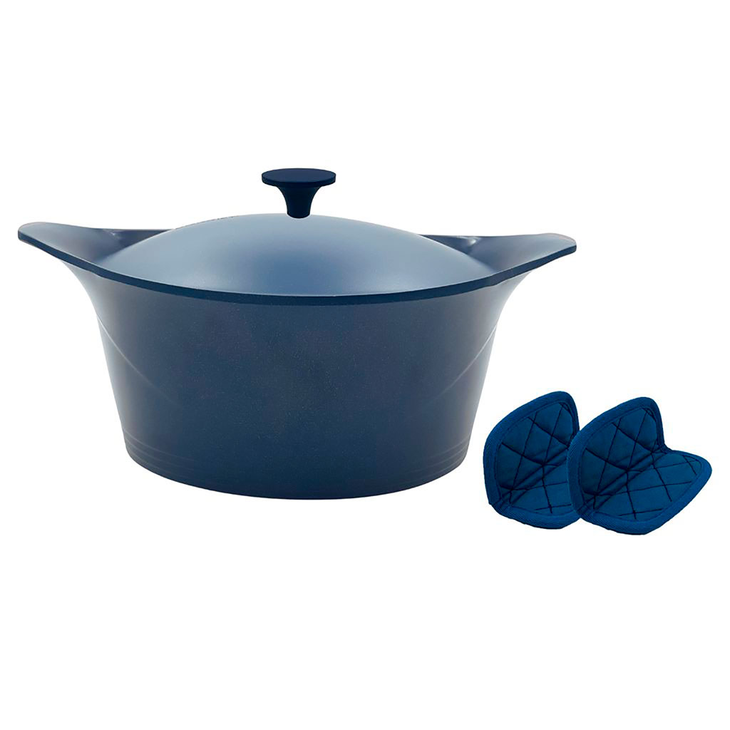 Découvrez la Cocotte Myrtille de 24 cm avec poignée en métal et maniques en coton, votre nouvelle alliée culinaire !
