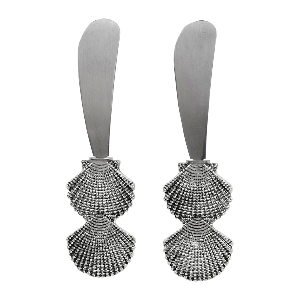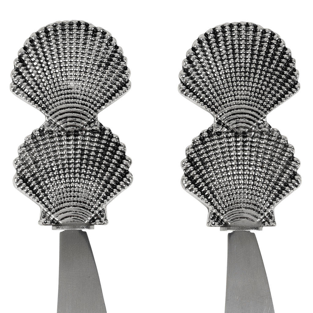 Ce duo de couteaux à beurre en inox argenté mise sur un charme marin discret avec ses manches ornés de coquillages en relief.