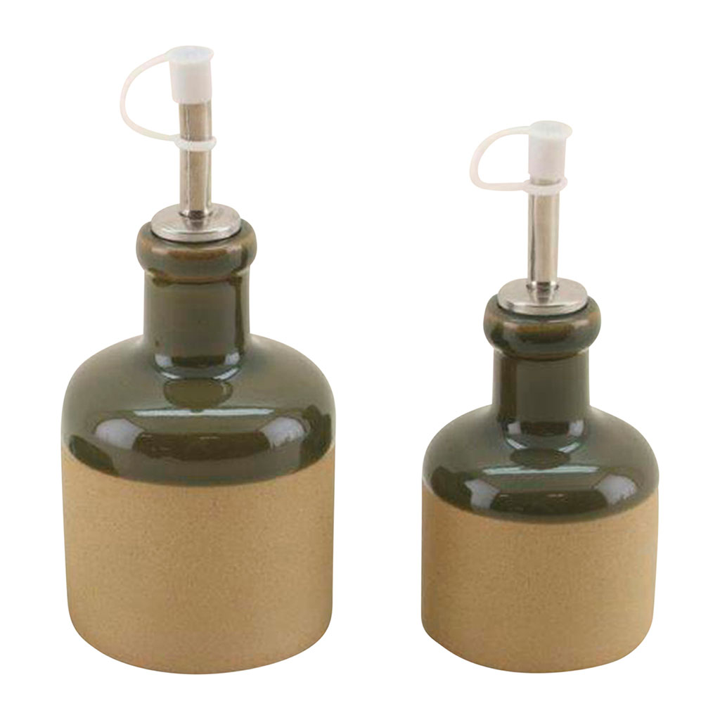 05 56 69 68 67-contact@fabriquedestyles.frHuilier et vinaigrier en grès kaki 27.5cl/17.5cl - Jade