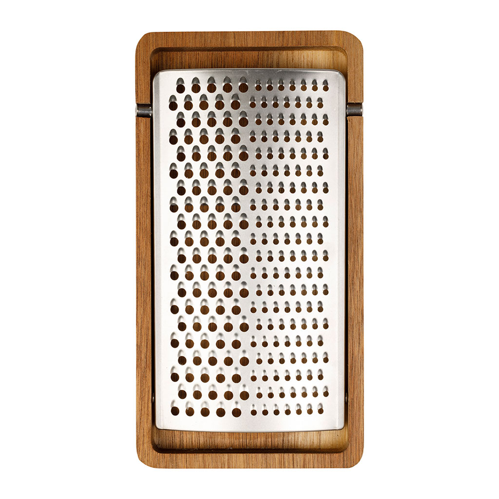 Découvrez un outil indispensable pour agrémenter votre cuisine : la râpe avec socle en bois d'acacia.