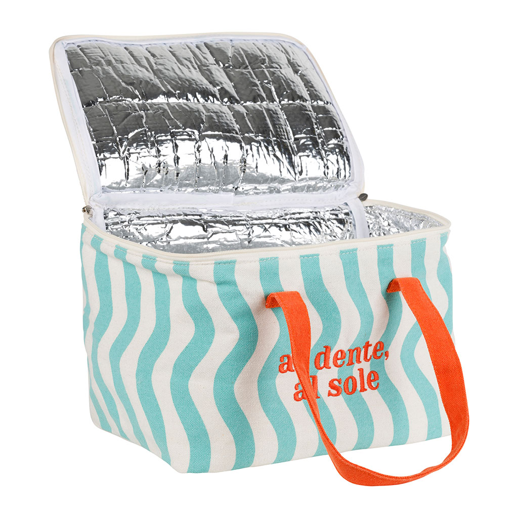 05 56 69 68 67-contact@fabriquedestyles.frSac isotherme en coton rayé turquoise et rouge - Solencia