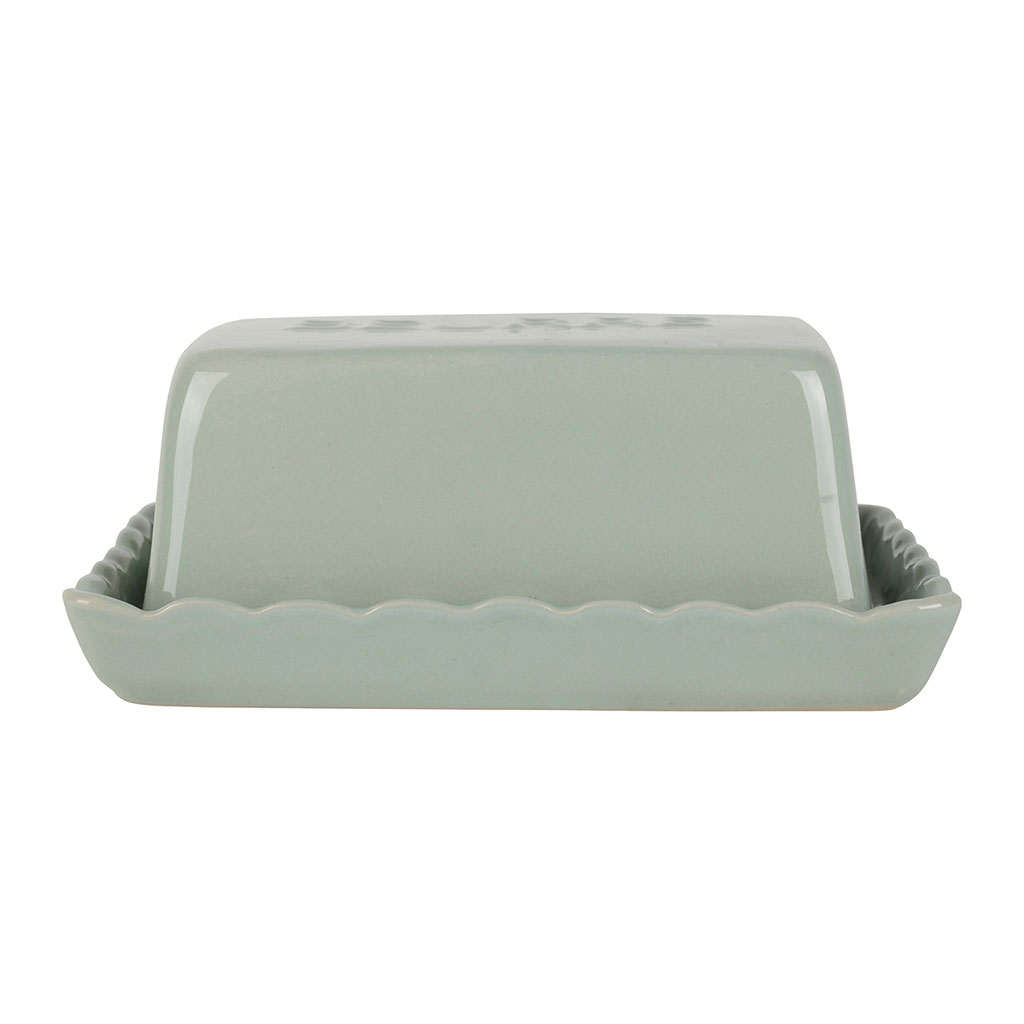Découvrez une touche de charme rustique pour votre table avec ce beurrier en grès vert d'eau.