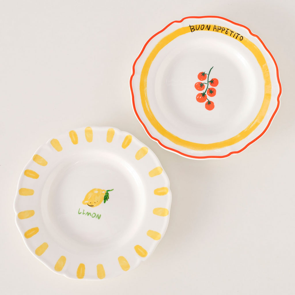 05 56 69 68 67-contact@fabriquedestyles.frAssiettes à dessert x2 en céramique jaune et blanc d20cm - Appetito