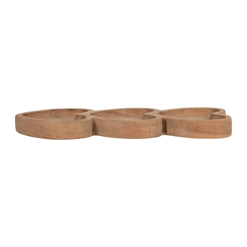 Ajoutez une touche de charme à vos moments de partage avec notre coupelle à trois compartiments en forme de cœur conçue en acacia naturel.