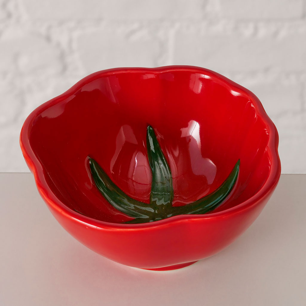 Cette coupelle tomate en céramique rouge arbore une teinte vive et une forme organique qui imite les courbes naturelles du légume.