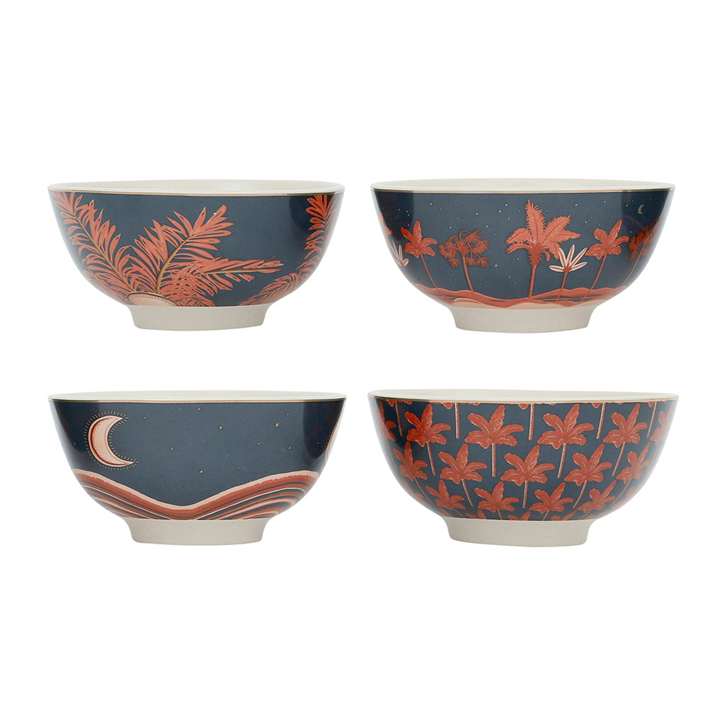 05 56 69 68 67-contact@fabriquedestyles.frLot de 4 bols en céramique bleu nuit avec motifs 30cl - Tropic Étoile