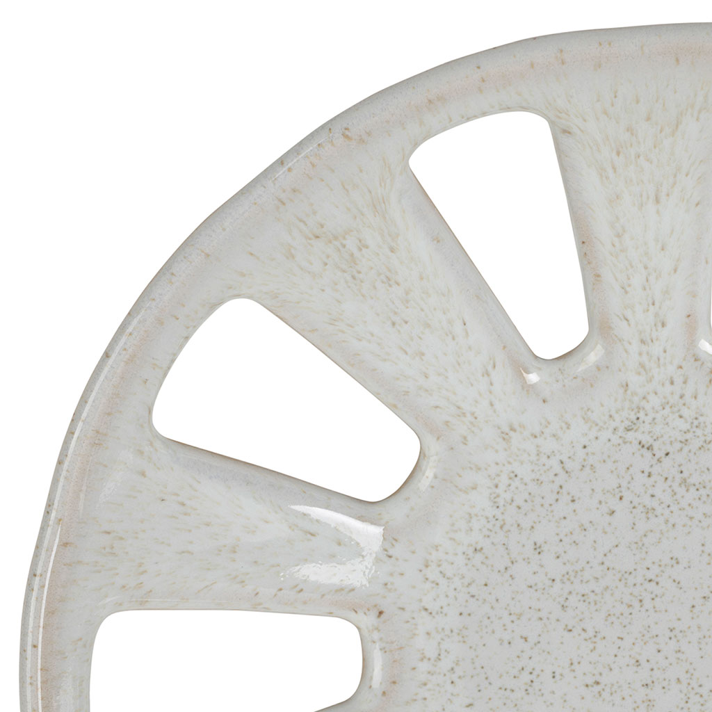 Ce modèle en grès blanc moucheté, d'un diamètre de 23 cm, se distingue par son design organique et sa silhouette élégante qui capte immédiatement l'attention lors de vos repas.
