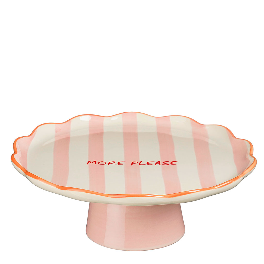 Ajoutez une touche de couleur à votre table avec ce charmant plat à gâteau en céramique rayé rose de la collection Mag.