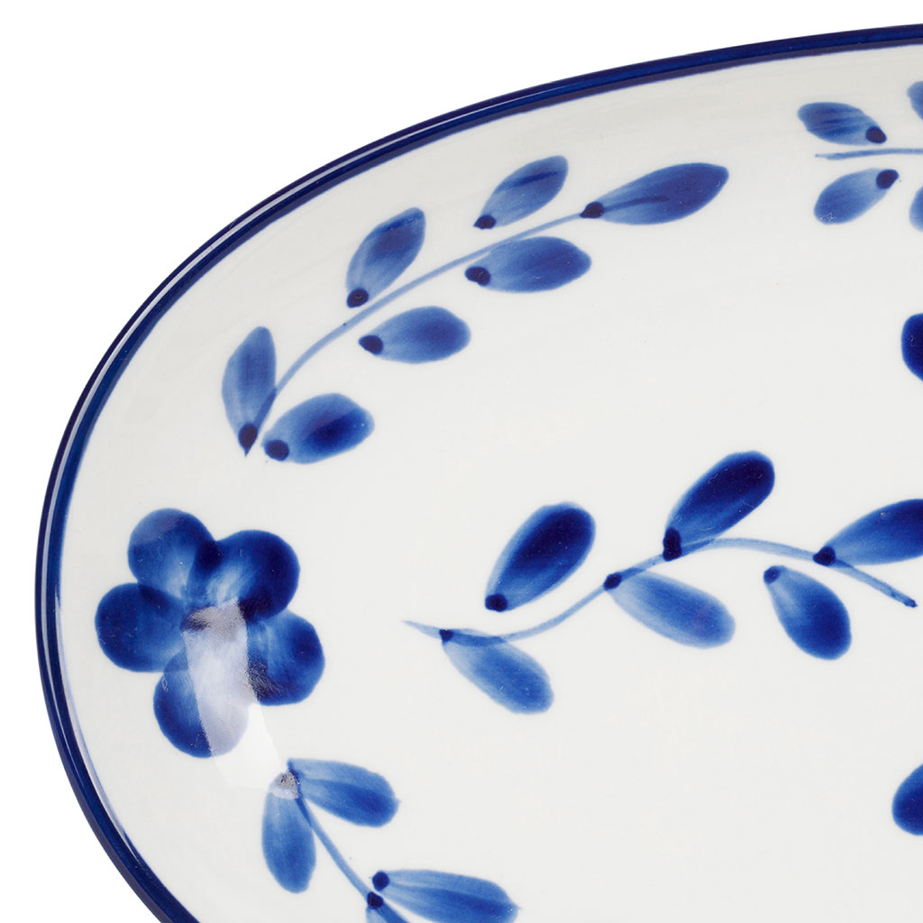 05 56 69 68 67-contact@fabriquedestyles.frPlat ovale en grès indigo et blanc 31x16cm - Bellagio