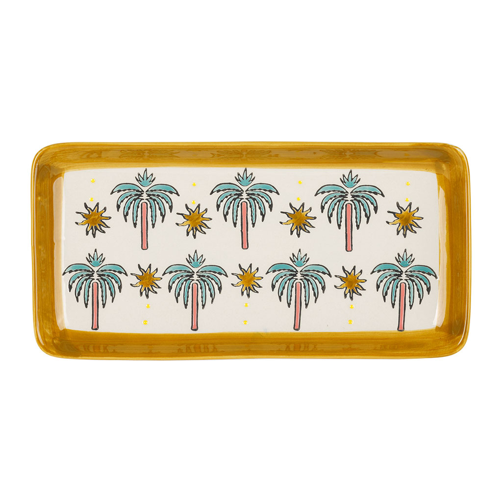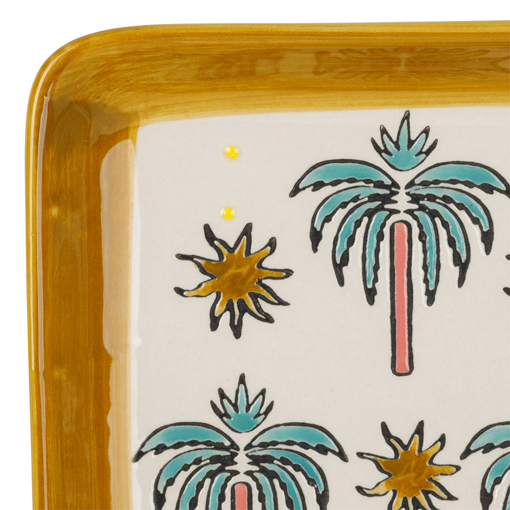 Ce superbe plat rectangulaire de 25x12 cm arbore un motif de palmiers qui apportera une bouffée d'air frais à vos moments à table.