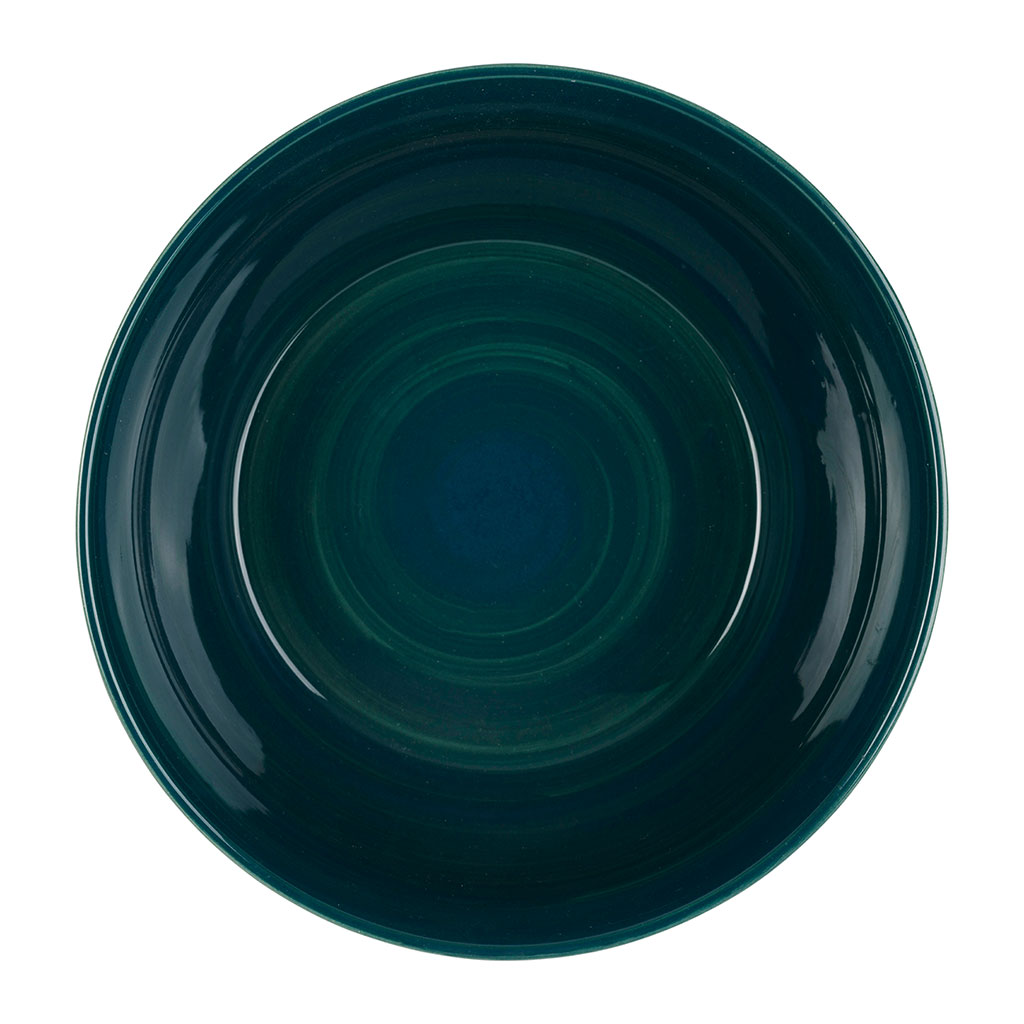 05 56 69 68 67-contact@fabriquedestyles.frSaladier palmiers en grès écru et émeraude d24cm - Palmisol