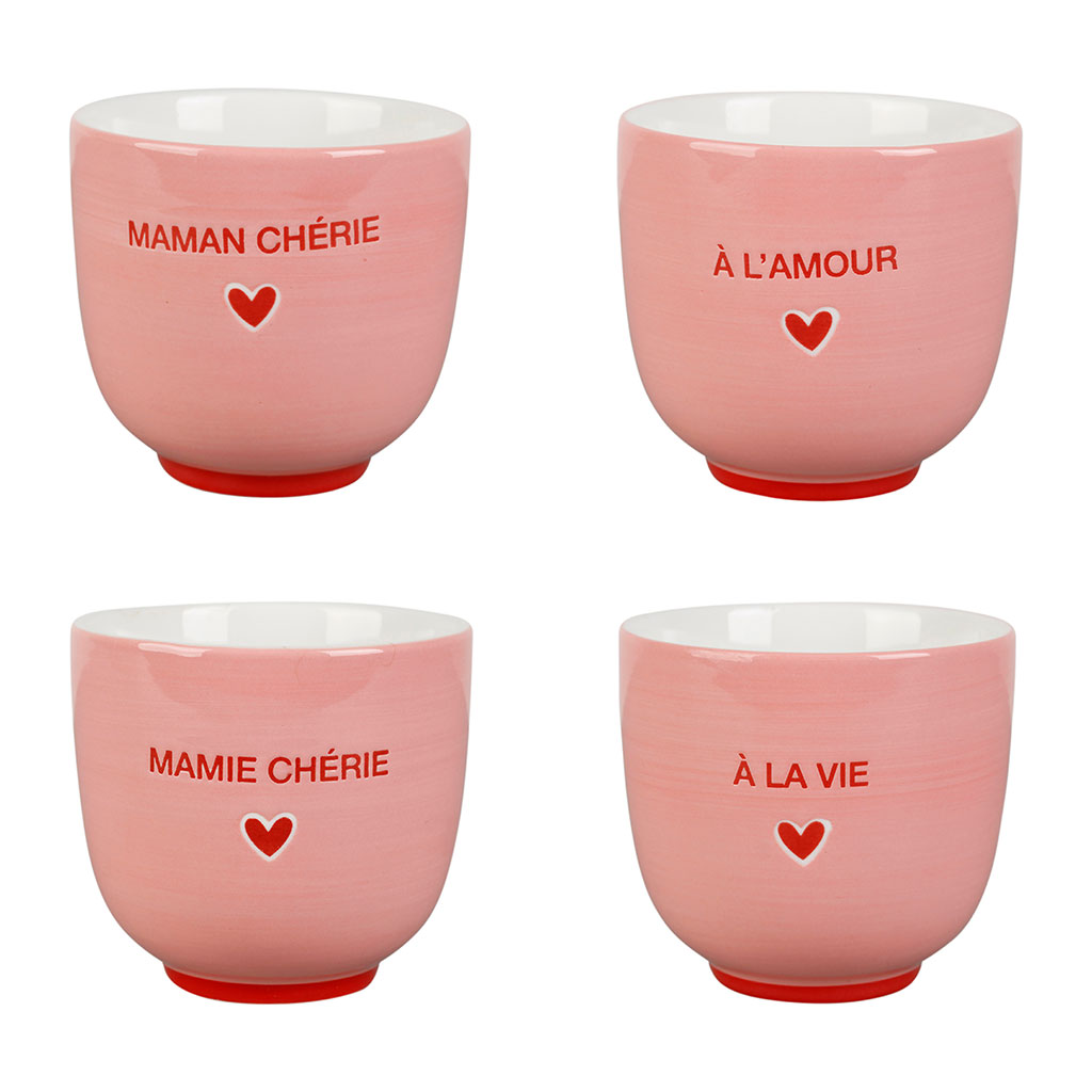 05 56 69 68 67-contact@fabriquedestyles.frTasses à café x4 en céramique rose et rouge 15cl - Douce amour