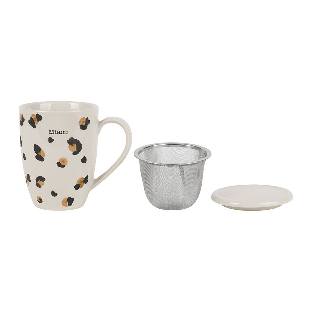 05 56 69 68 67-contact@fabriquedestyles.frTisanière en grès léopard brun et noir avec filtre 30cl - Mini fauve