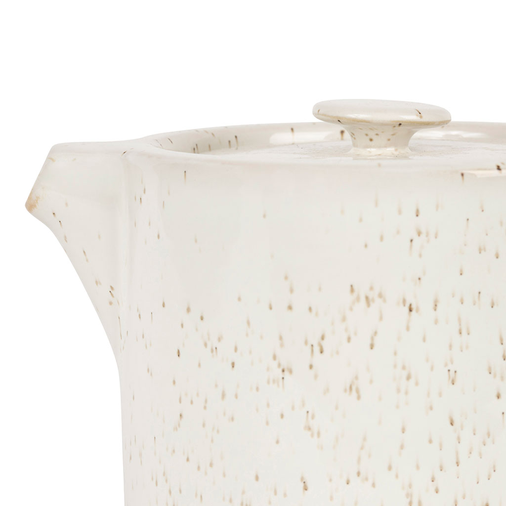 La théière en grès blanc moucheté et bois - nordika est un choix parfait pour les amateurs de thé qui souhaitent déguster leur meilleur thé.