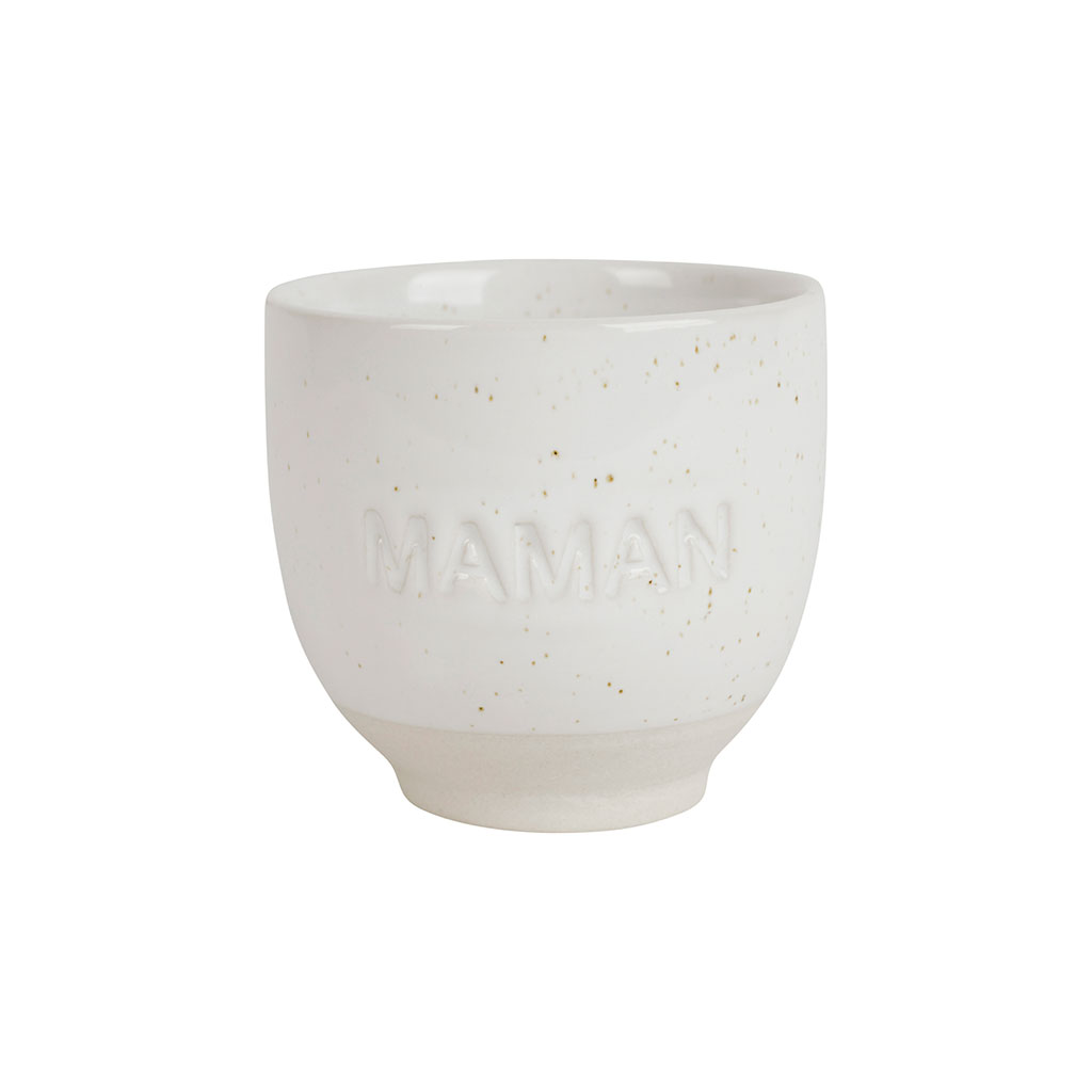 05 56 69 68 67-contact@fabriquedestyles.frTasse à café maman en grès écru moucheté 15cl - Famille