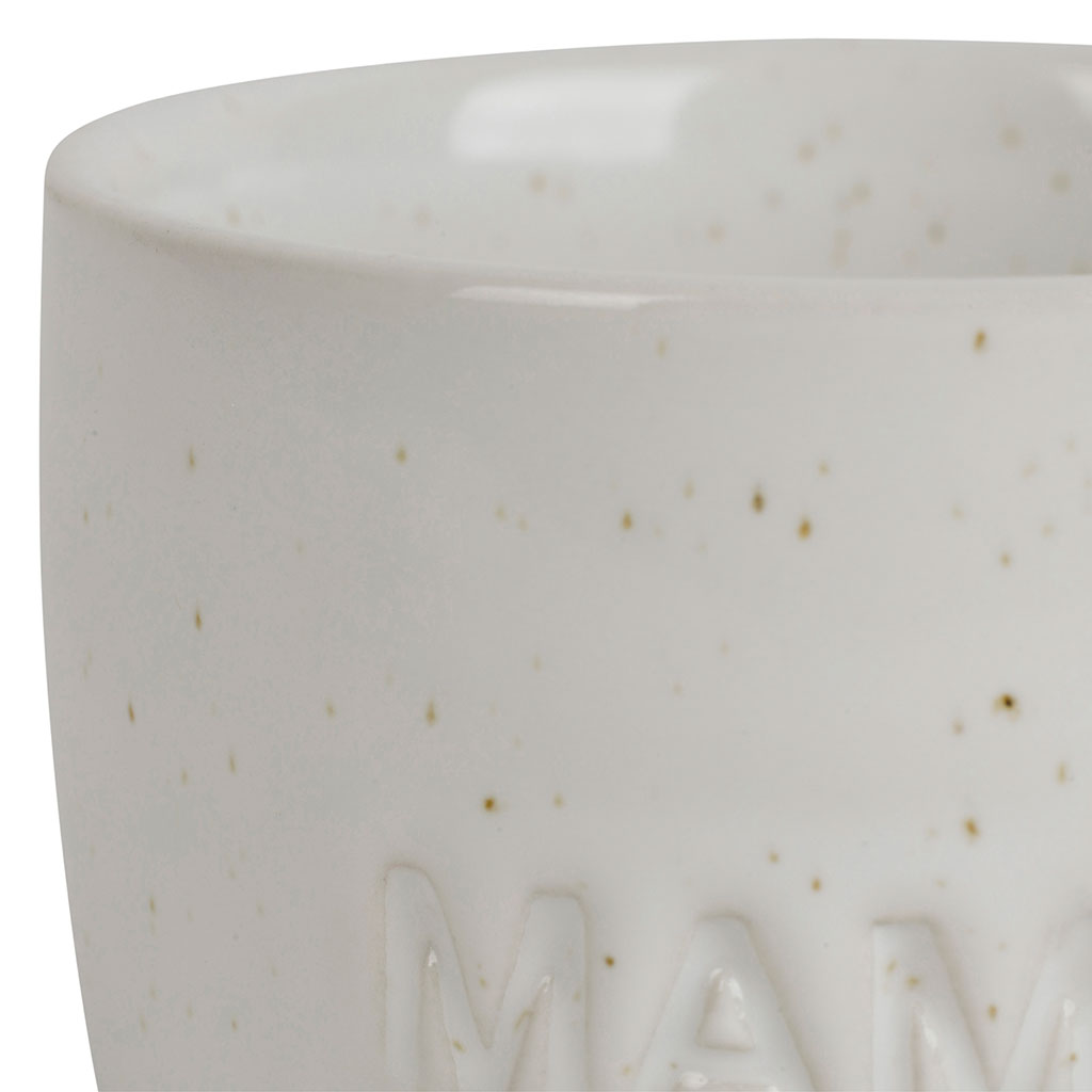 Cette tasse dédiée à la "Maman" affiche une inscription sobre et élégante, centrée sur une paroi en grès moucheté aux nuances écrue et sable.