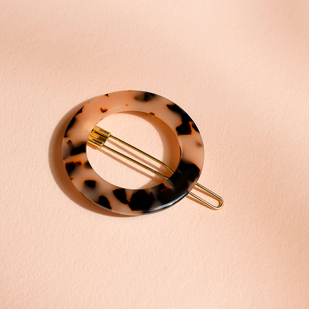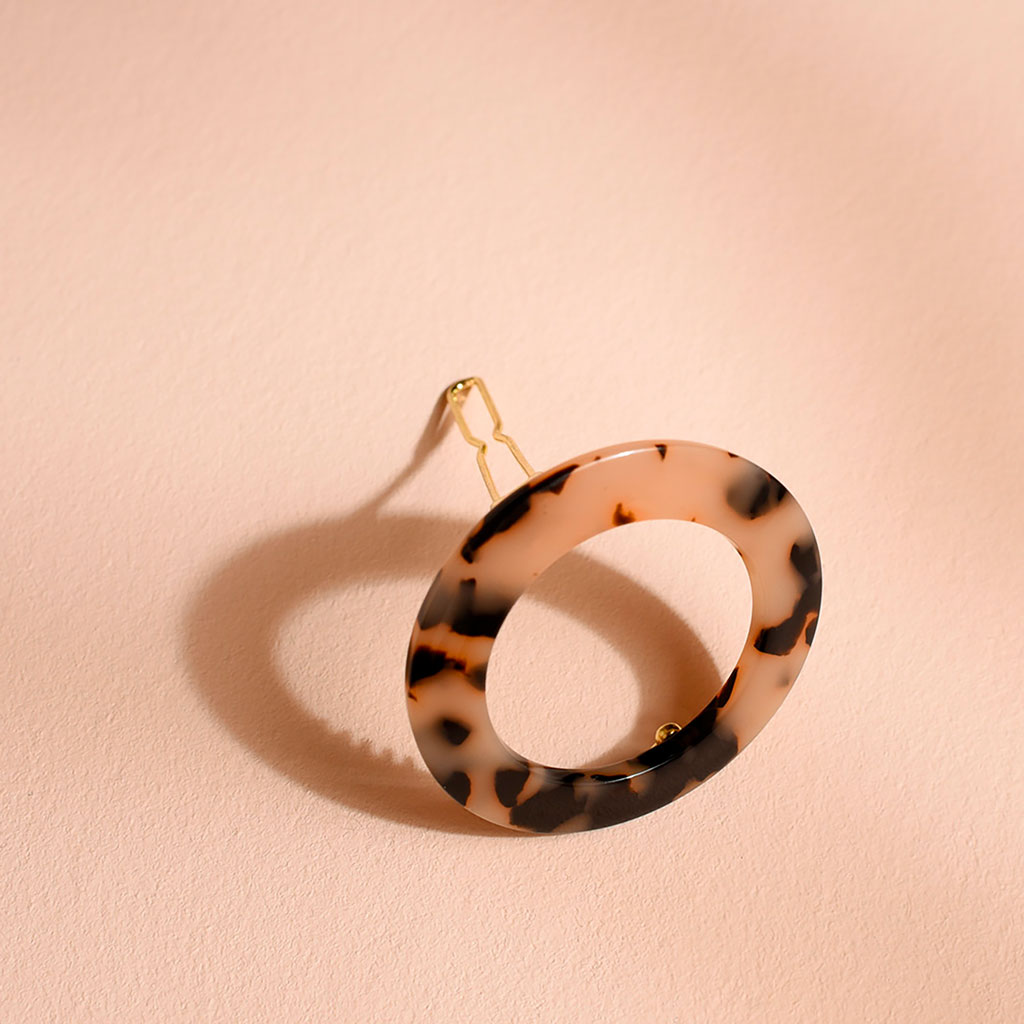 Barrette ronde écaille, à porter en demi-queue ou juste pour fixer quelques mèches.