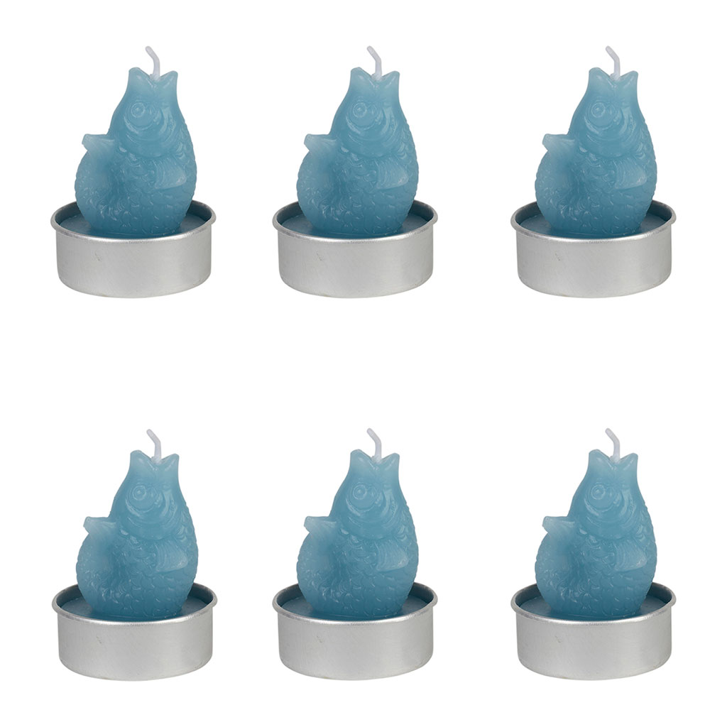 Plongez dans une atmosphère apaisante avec cet ensemble de six bougies à la forme ludique de poisson, teintes d'un bleu océanique.