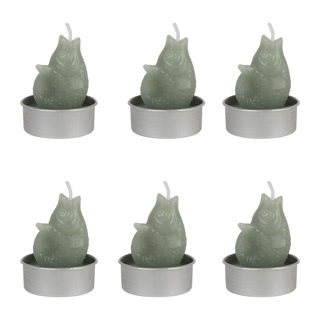 Découvrez notre ensemble unique de six bougies en forme de poisson, dans une teinte apaisante de vert d'eau.