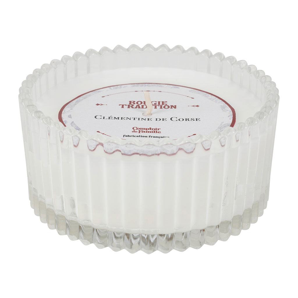 Découvrez une expérience olfactive unique avec notre bougie en verre senteur clémentine de 180g.