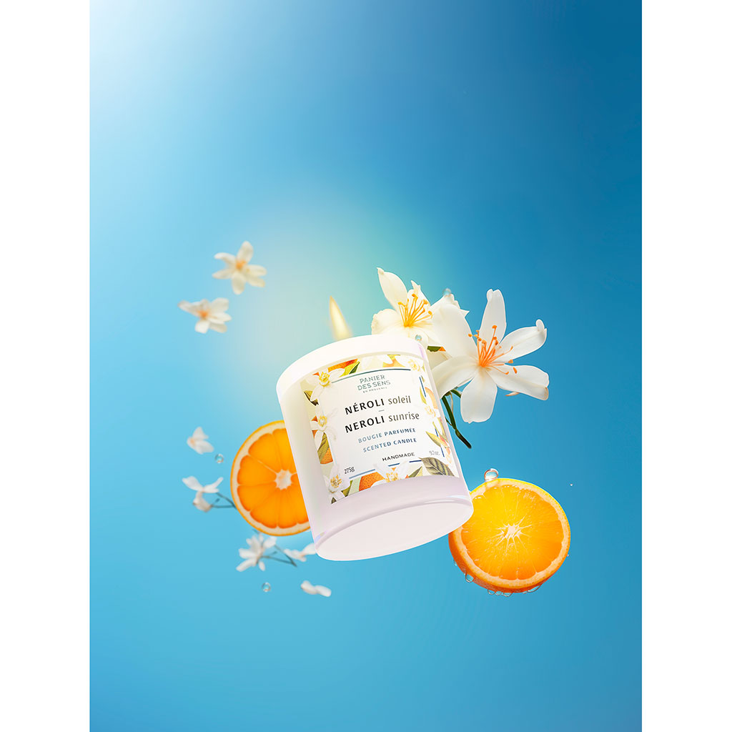 Laissez-vous captiver par notre bougie parfumée Néroli Soleil aux notes florales et gourmandes associées à la fraîcheur régréssive des agrumes.