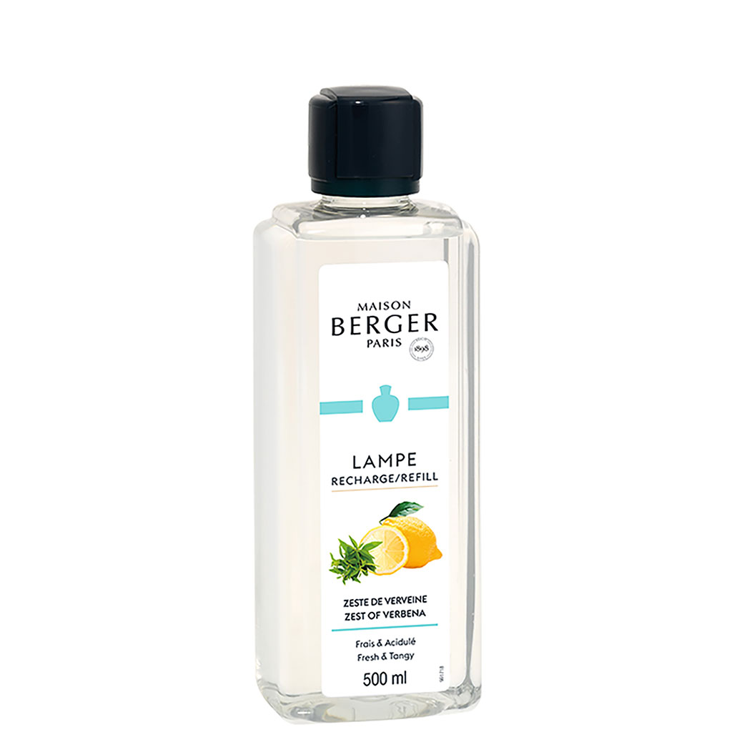 Découvrez notre recharge parfum pour lampe 500 ml, au délicieux zeste de verveine, proposée par Maison Berger.