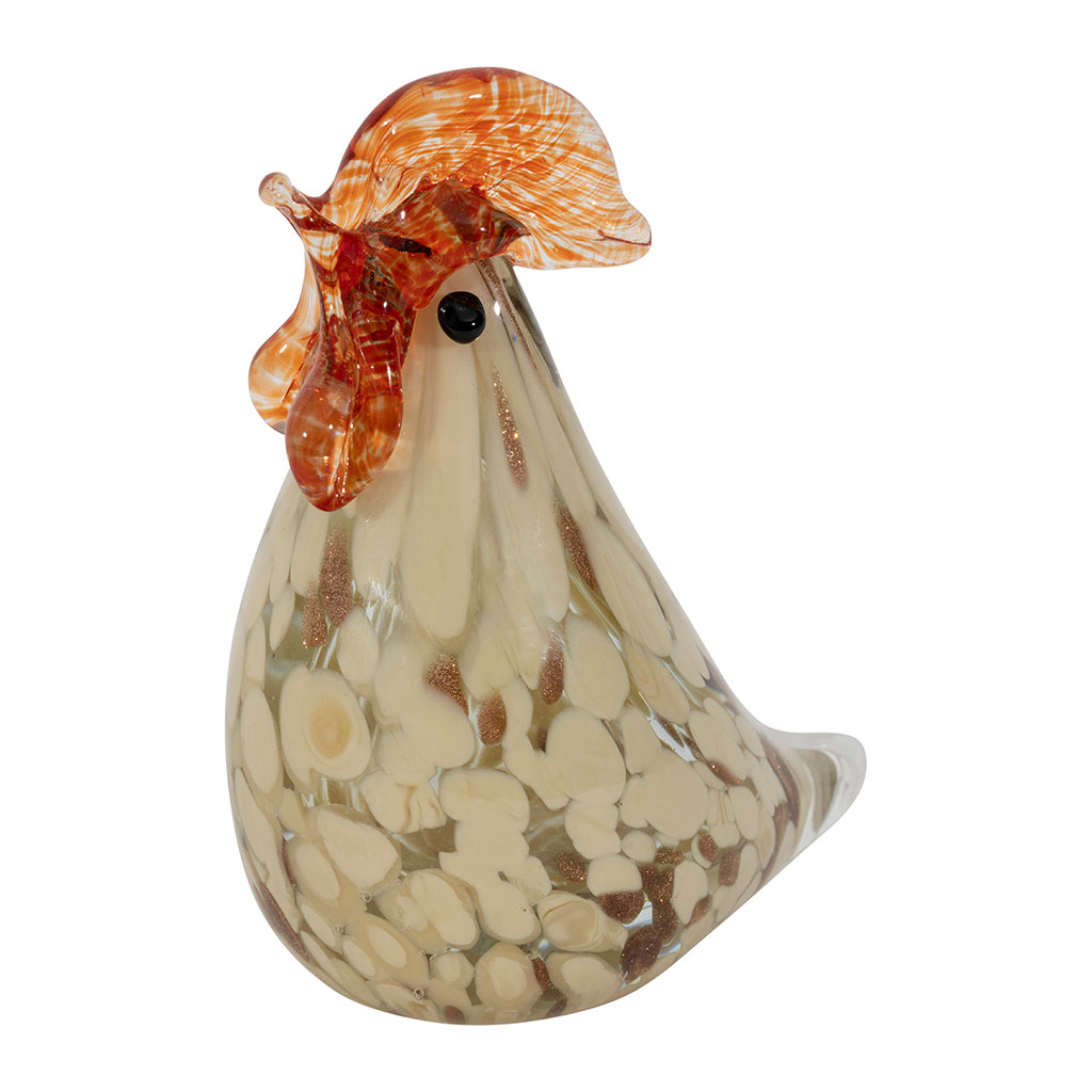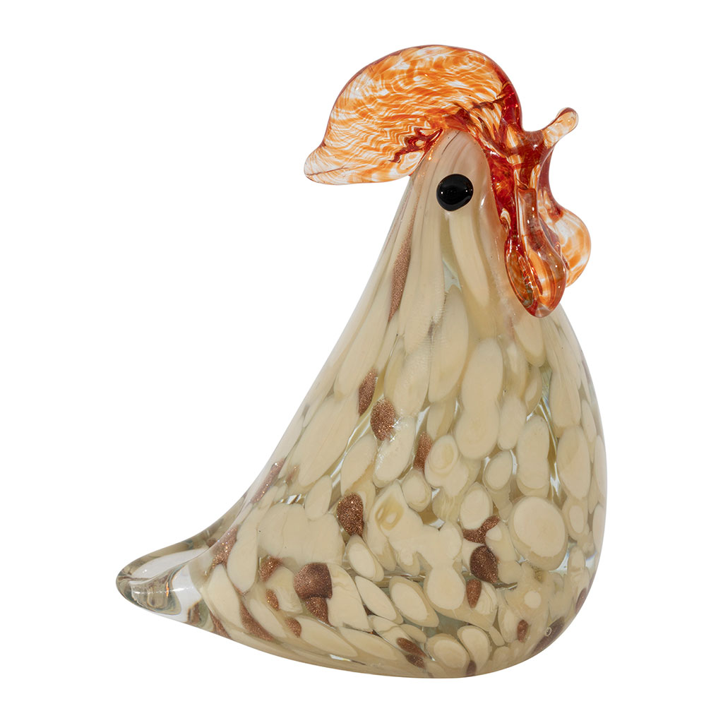 05 56 69 68 67-contact@fabriquedestyles.frPresse-papier coq en verre beige et rouge