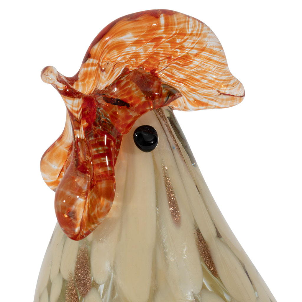 Ajoutez une touche d'originalité et de couleur à votre espace de travail avec cet étonnant presse-papier représentant un coq, fruit de l'artisanat en verre aux teintes beige et rouge.