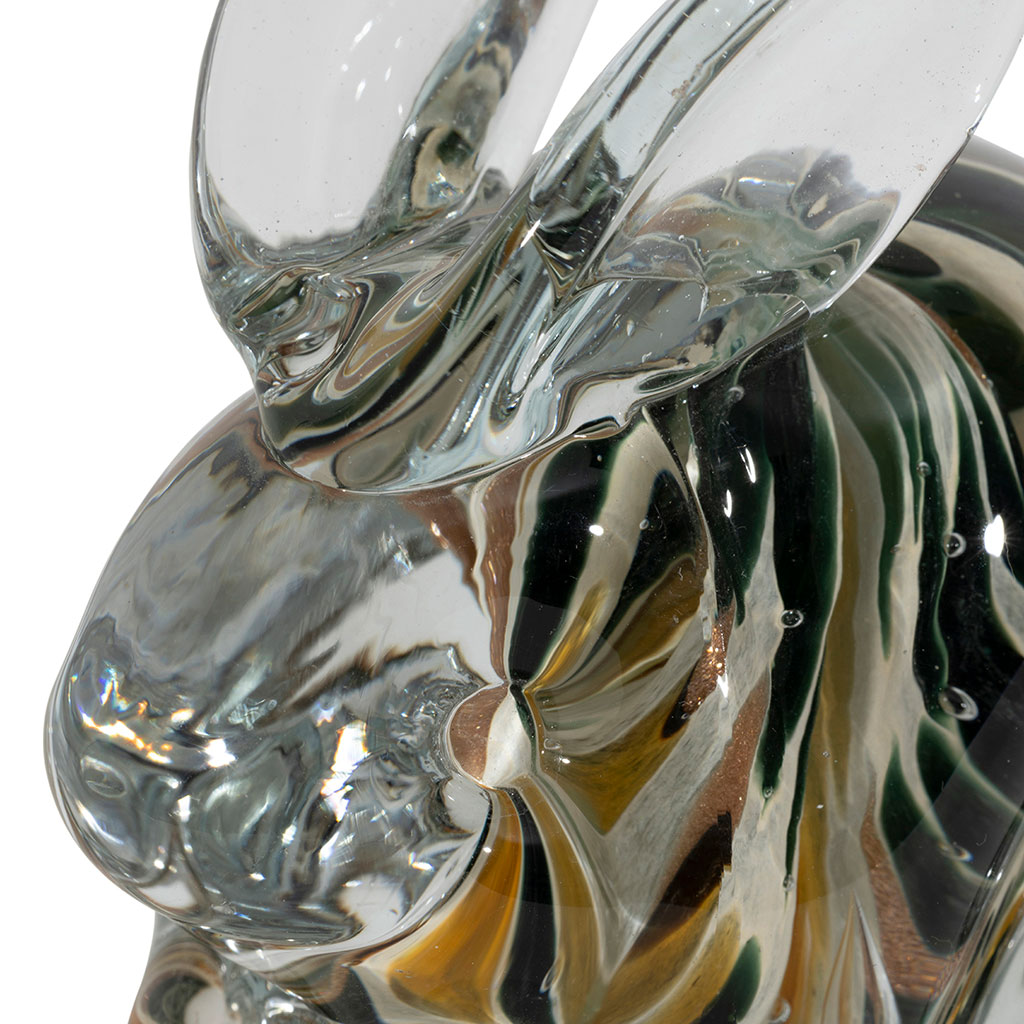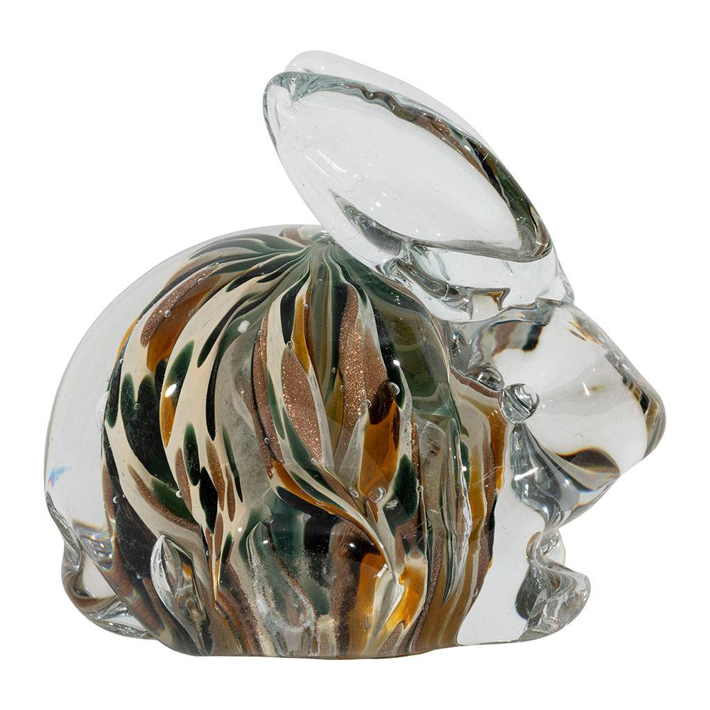 05 56 69 68 67-contact@fabriquedestyles.frPresse-papier lapin en verre ambre et kaki