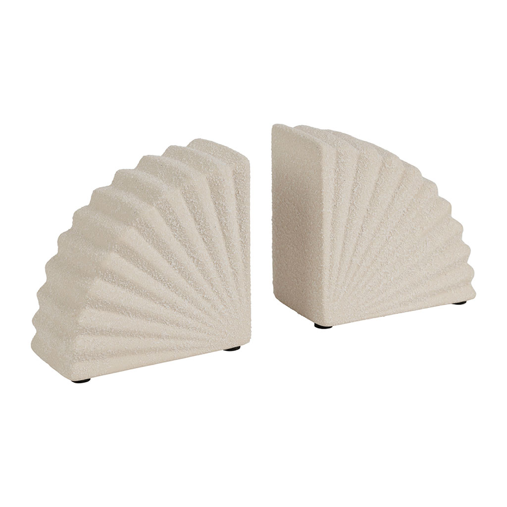 Inspirés par les courbes d’un éventail ou les vagues d’une coquille, ces serre-livres en grès blanc cassé apportent une touche graphique et minérale à votre bibliothèque.