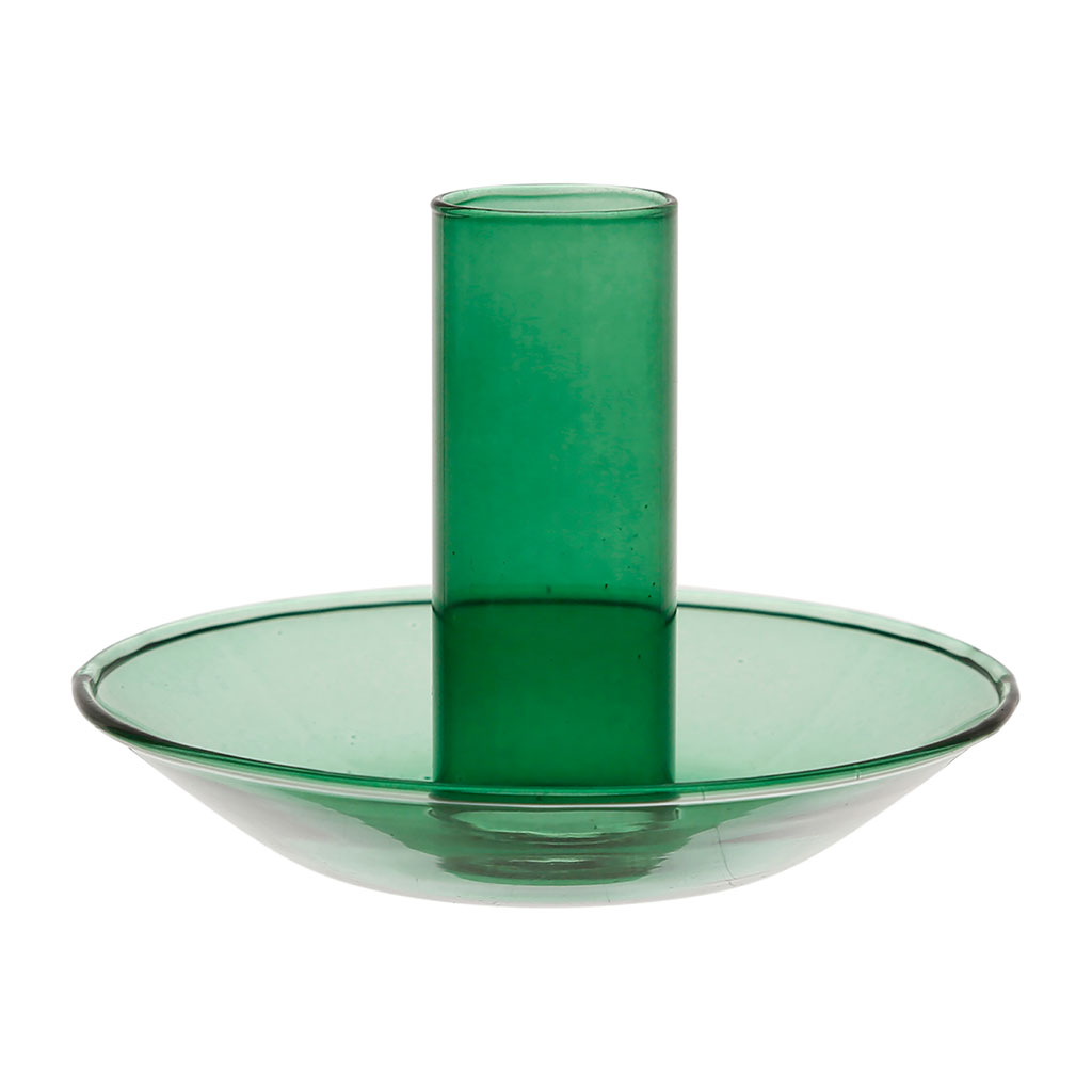 Parfait pour accueillir vos bougies préférées, ce bougeoir en verre vert ajoutera une note de fantaisie à votre espace.