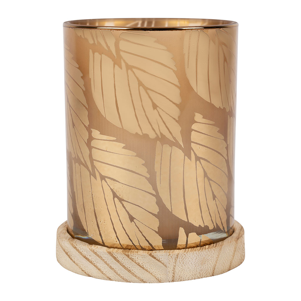 05 56 69 68 67-contact@fabriquedestyles.frPhotophore en verre et bois ambre d10cm - Noisetier