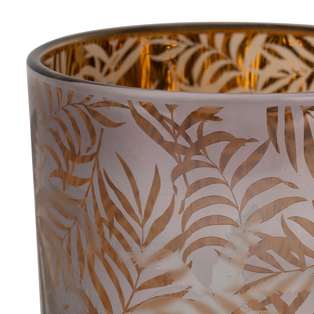 Ajoutez une touche chaleureuse et accueillante à votre intérieur avec ce duo de photophores en verre de couleur ambre et argent.