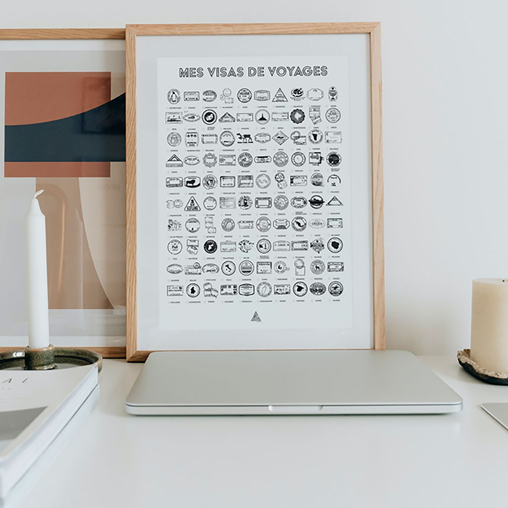Transformez votre intérieur en une invitation au voyage avec cette magnifique affiche de visas de voyages au format 50x70cm.