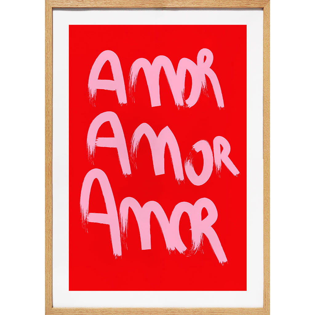 Visuel "BOGOTA AMOR", format 50x70 cm, créé par CM Création, encadré d'une baguette en MDF, couleur blanc. Le tableau est mis sous verre pour protection.