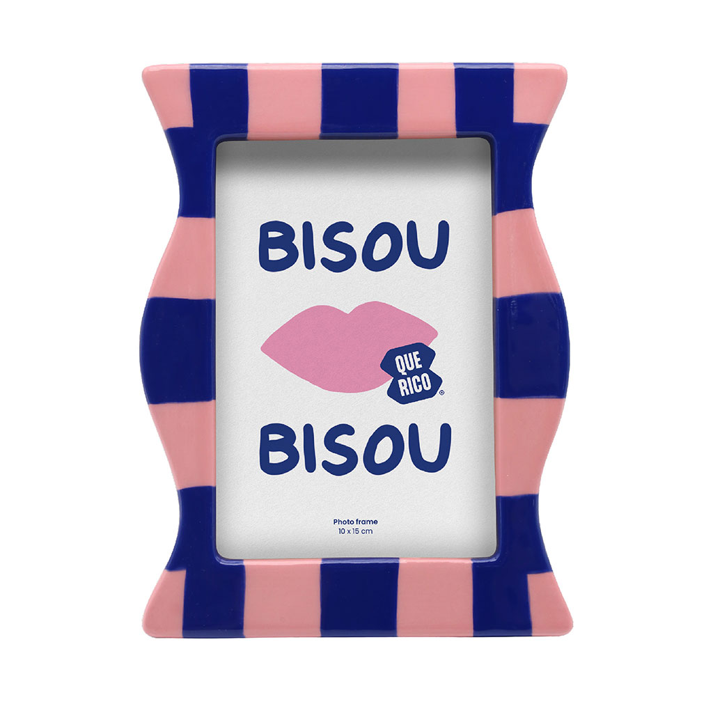 05 56 69 68 67-contact@fabriquedestyles.frCadre photo en céramique rayé bleu et rose 14x20cm - Franscisco