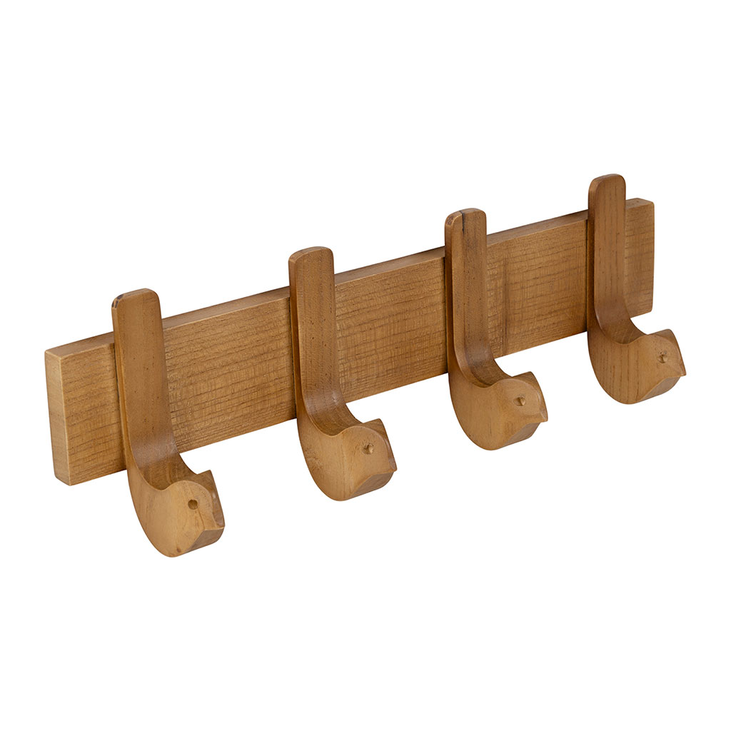 05 56 69 68 67-contact@fabriquedestyles.frPatère 4 crochets oiseau en acajour blanc naturel 40x13cm - Campagne