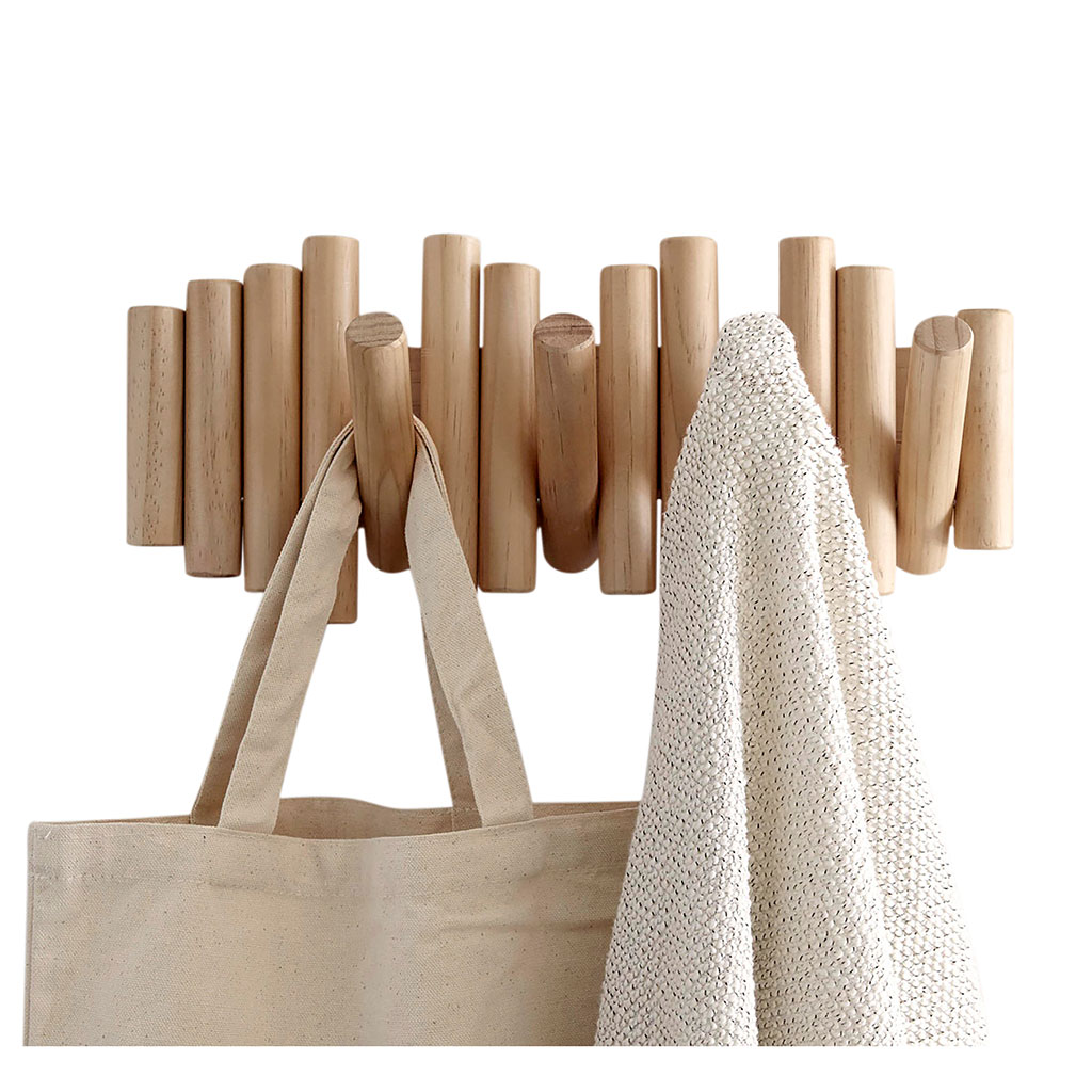 La patère murale en bois naturel de 38x18x6.3cm avec 5 crochets, idéale pour ajouter une touche d'élégance à votre intérieur tout en permettant un rangement organisé de vos objets.
