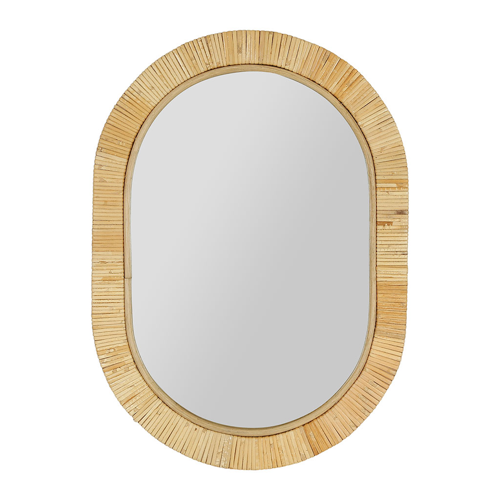 Découvrez le magnifique miroir Tulum en rotin et en MDF naturel de dimensions 40x55cm.